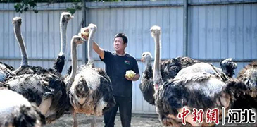 養殖戶王秀瑞給鴕鳥喂青菜。劉唯清攝 近日,在河北省灤南縣扒齒港鎮后營村的一處鴕鳥養殖場內,30多只體高近兩米、平均體重超過100公斤的鴕鳥正悠閑踱步。養殖戶王秀瑞